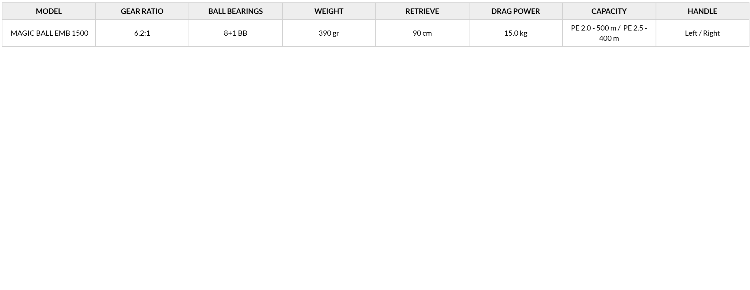 - Ισχύς: Με ισχυρό φρένο 15kg, το Reel Magic Ball EMB 1500 μπορεί να σας βοηθήσει να αντιμετωπίσετε ακόμα και τα πιο μαχητικά ψάρια.