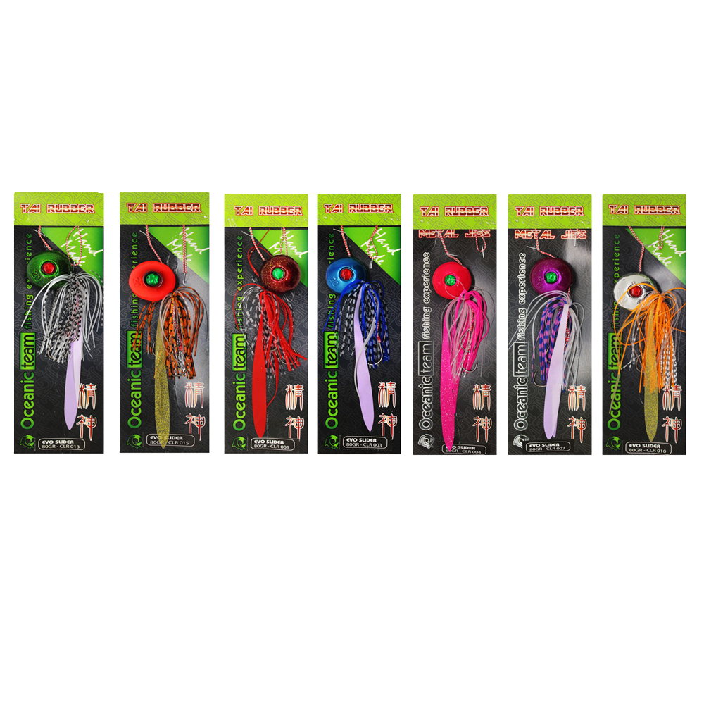Για την τεχνική του tai rubber, η Oceanic διαθέτει μια πλήρη γκάμα slider τα οποία διαθέτουν άριστη ποιότητα σε τιμή… απίστευτα προσιτή! Όλες οι μπίλιες είναι πολύ καλά βαμμένες και δεν φεύγουν τα χρώματα τους ακόμα και στην πιο βίαιη πρόσκρουση σε βράχο στον βυθό. Όλα τα μοντέλα διαθέτουν σωληνάκι για να μην τραυματίζεται το παράμαλλο ενώ τα αγκίστρια και οι τρέσες είναι πολύ καλής ποιότητας αλλά και αποτελεσματικότητας!