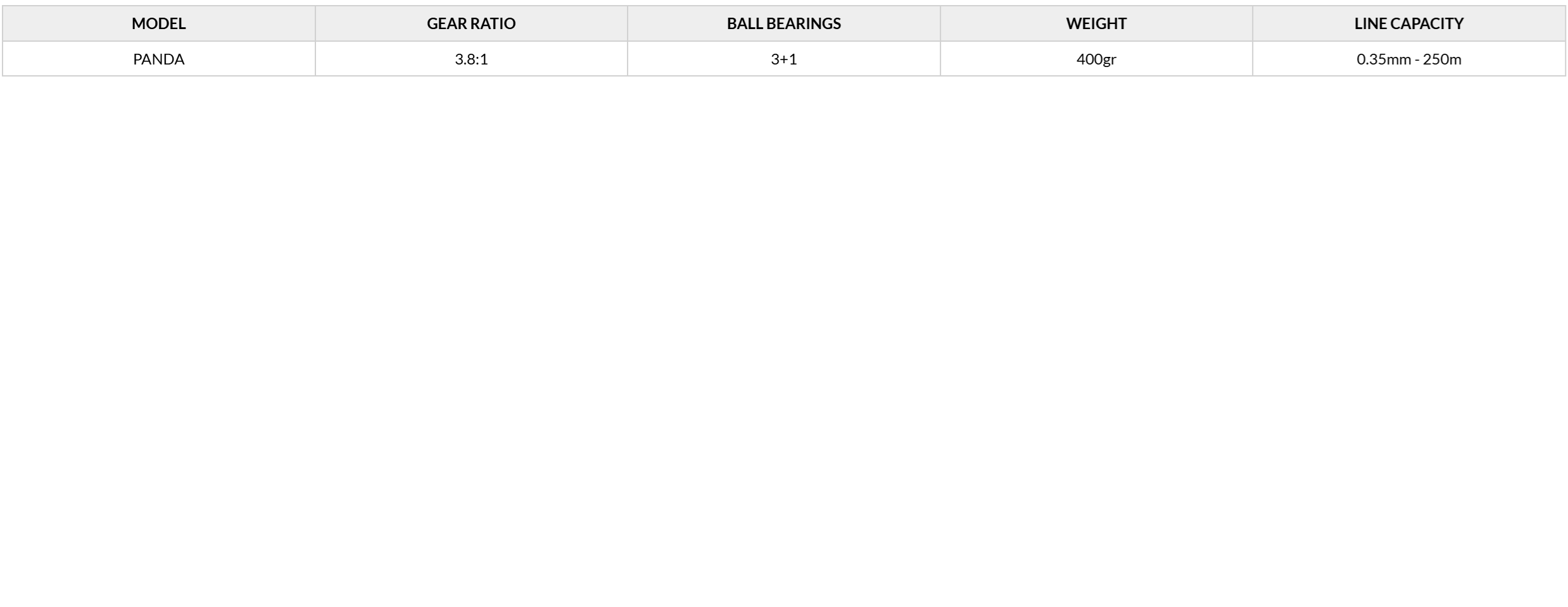 Ένας θαυμάσιος μηχανισμός συρτής με κατανεμητή, για να είναι η πετονιά ή το νήμα σας πάντα στρωμένο με τάξη και χωρίς μπερδέματα. Διαθέτει σώμα από ενισχυμένο ελαφρύ γραφίτη, μικρορυθμιζόμενο star drag, ακαριαία αντιεπιστροφή και δυνατό χερούλι με εργονομικό grip. Με μικρό βάρος, δυνατά φρένα και μεγάλη δύναμη έλξης, το Panda είναι ένα εργαλείο που δεν φοβάται την σκληρή χρήση και το αλάτι!