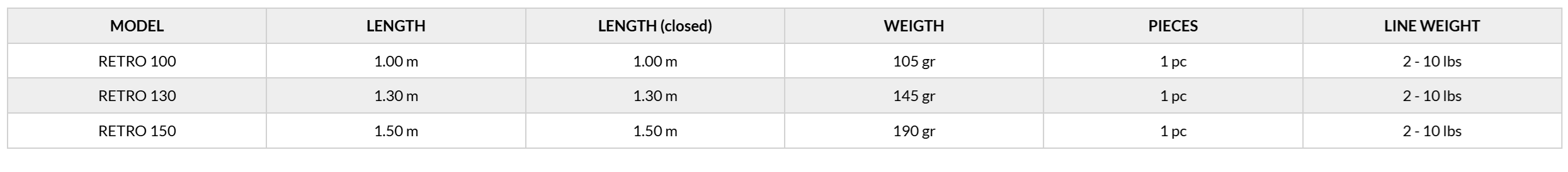 | Μήκος | 1.00m, 1.30m, 1.50m |