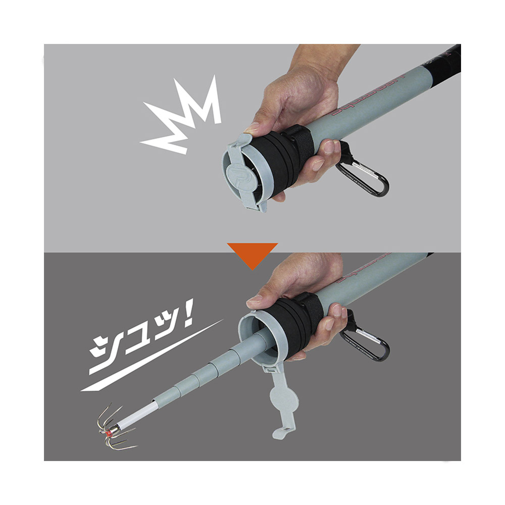 Ένας εξαιρετικά μικρός γάντζος με συμπαγείς διαστάσεις κλεισίματος 39 cm, ειδικός για το eging που μεταφέρεται παντού εύκολα! Ο γάντζος έχει διάμετρο 44 mm και διαθέτει 6 πανίσχυρες βελόνες ενώ το βάρος του είναι μόνο 385gr. Με συνολικό μήκος 3.5 μέτρα και καλή λειτουργικότητα, λευκό τοπ που φαίνεται εύκολα το βράδυ και ιμάντα που τον καθιστά πολύ βολικό στη μεταφορά, ο Prox One Hand Squid Gaff είναι ένα must-have αντικείμενο για το Eging!