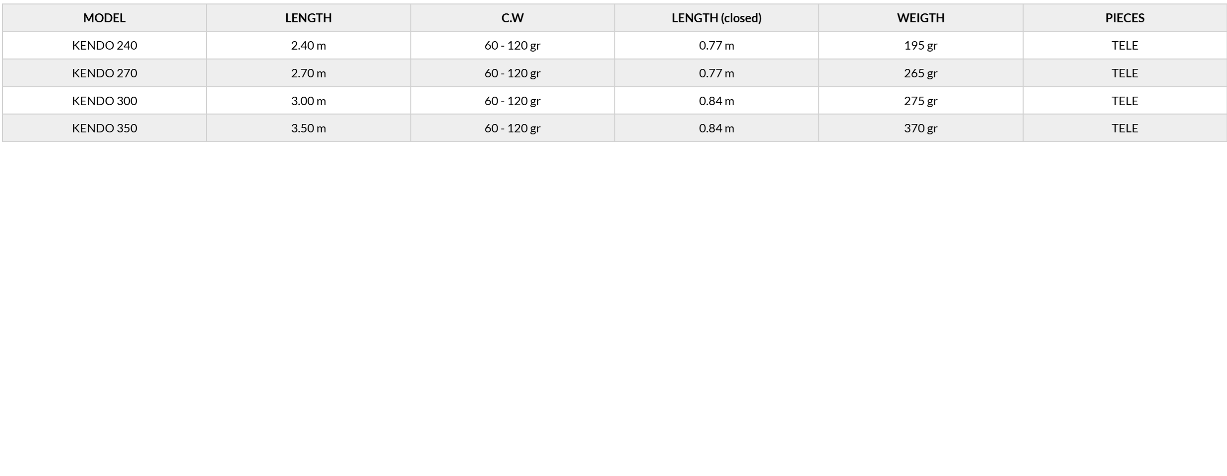 | Μήκος | 2.40, 2.70, 3.00, 3.50 |